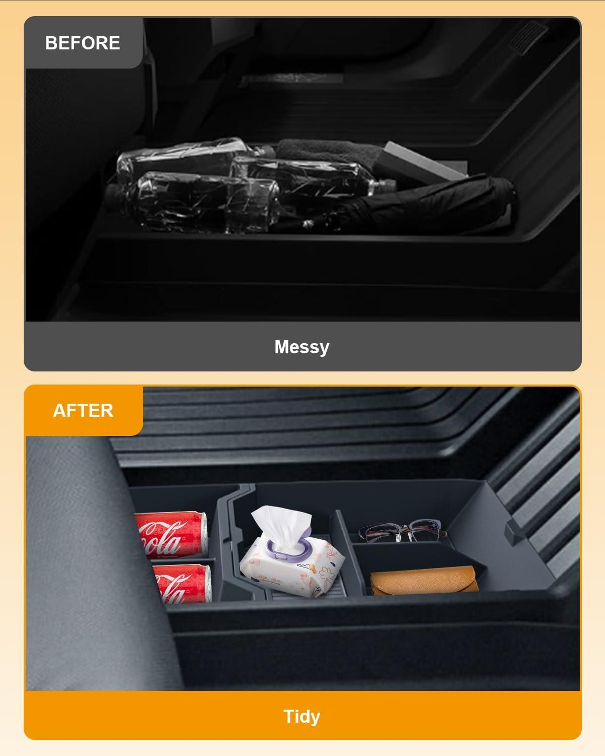 4PCS Center Console Organizer Tray For Tesla Cybertruck 2024 Accessories: Cup Holder Insert, Floor Center Console Organizer, Hidden Armrest Storage Box, Front Under Seat Storage Box.(2PCS Front Under Seat Storage Box)