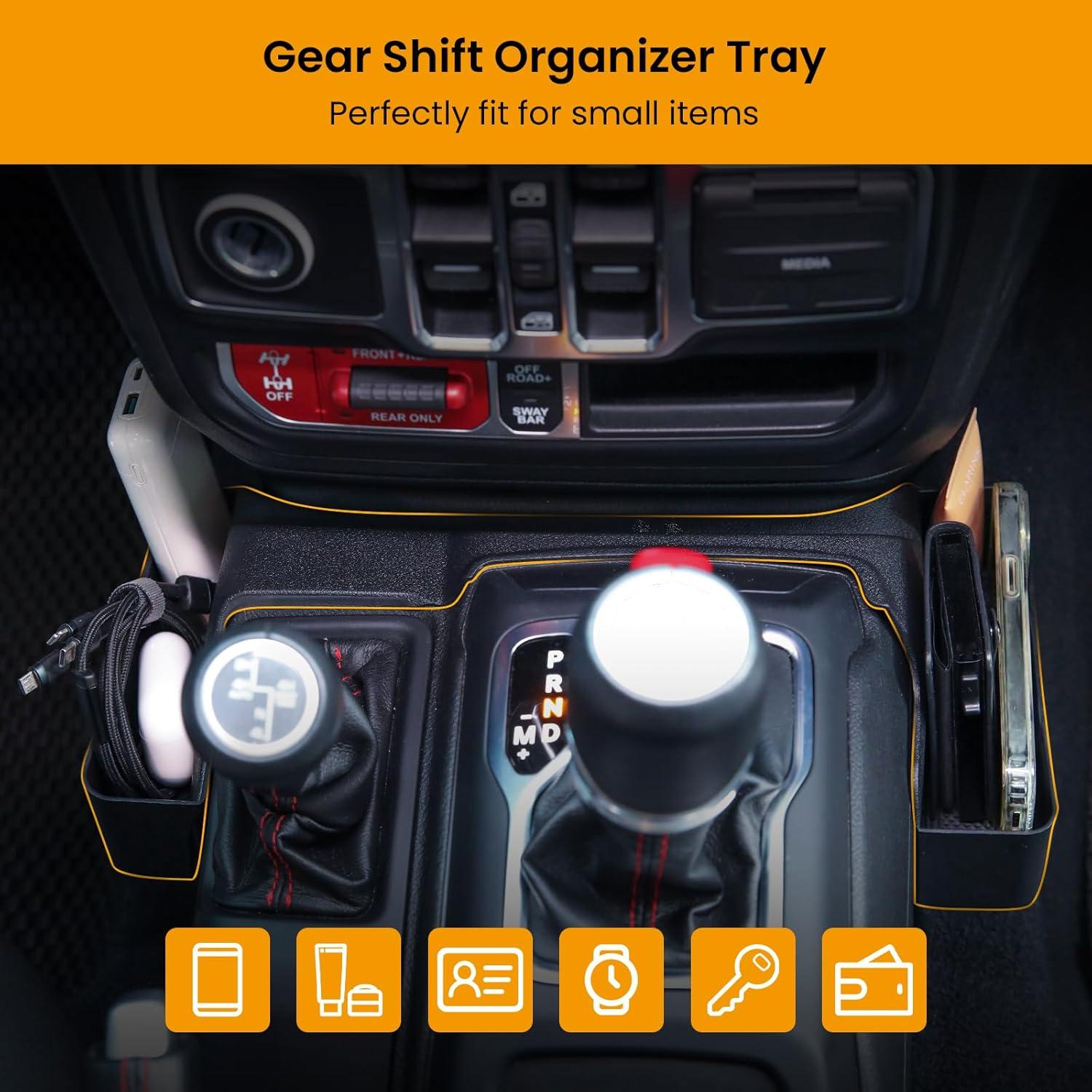 3PCS Center Console Organizer for 2025 2024 2023-2018 Jeep Wrangler JL JLU 4XE and Gladiator JT Accessories, Gear Shift Storage Tray, Hanging Storage Box, Not for JK/JKU(3PCS(2018-2025))