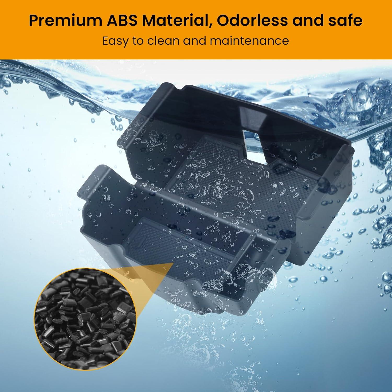 Premium Material: Made of high-quality ABS shell, which is sturdy and durable, non-toxic and odorless, environmentally friendly, and safe for your family and pets. The PVC mat inner the box is soft and anti-scratch, keeping items in place and silent when you accelerate or brake.