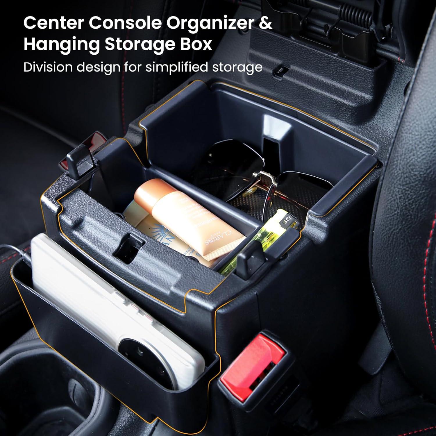 Perfect for Jeep Wrangler: Utilizing 3D Scanning and integrated molding technology, the BANKKY center console organizer is specifically designed for 2018-2023 Jeep Wrangler JL/JLU and Gladiator JT. It 100% perfectly fits the center console/armrest/gear shift/grab bar and maximizes your storage. Comes with 1*Gear Shift Organizer Tray, 1*Center Console Organizer, 1*Hanging Storage Box, 1* Armrest Hidden Storage Box, 1*Passenger Side Storage Tray