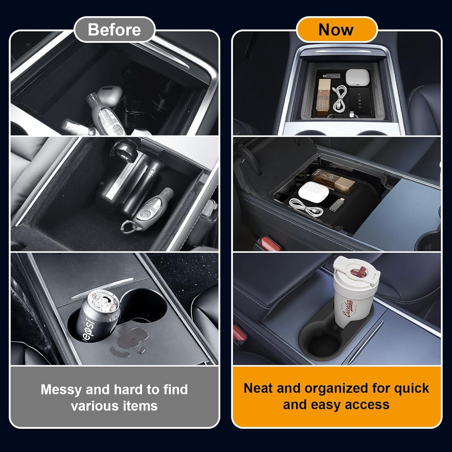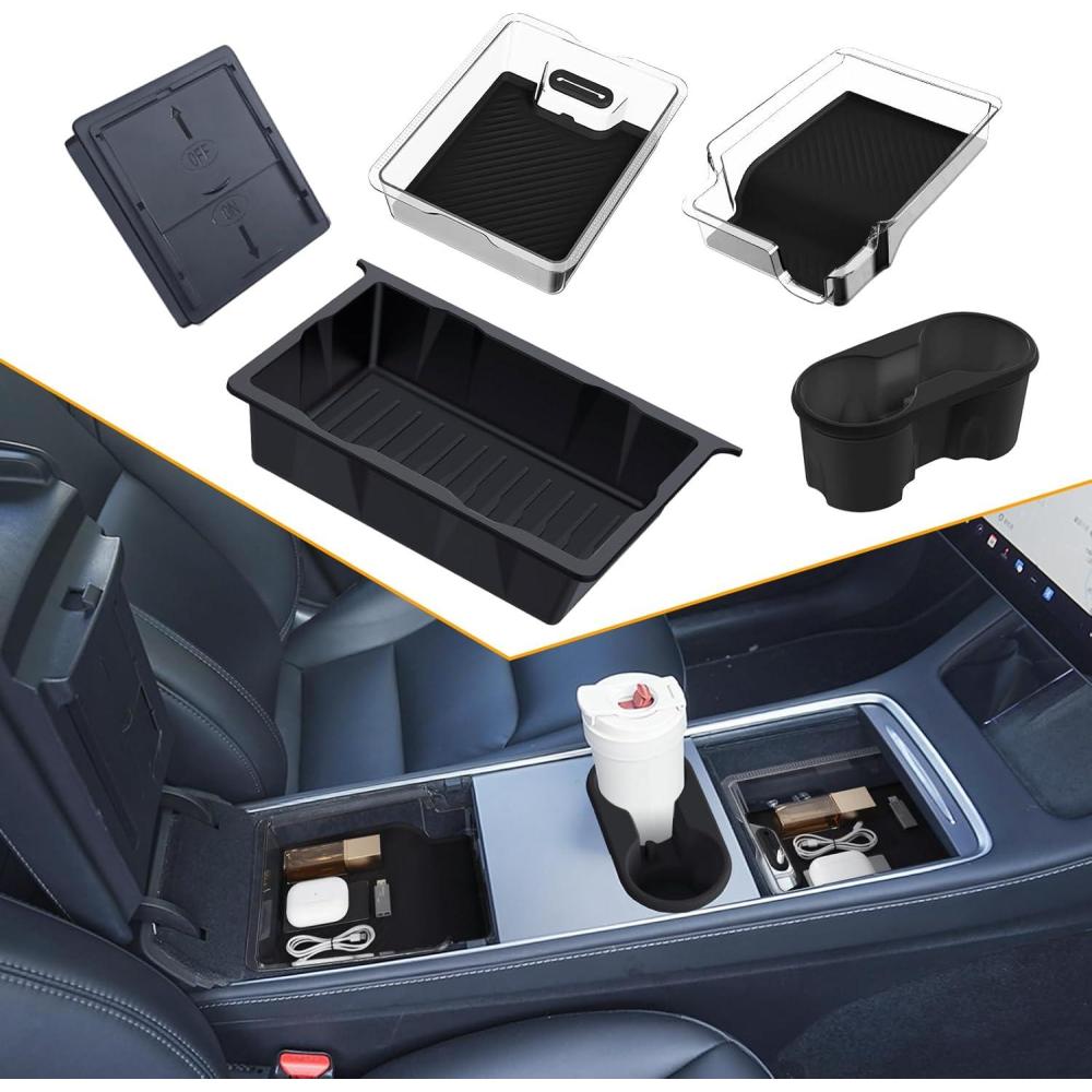 Perfect for Tesla Model Y: Adopted 3D Scanned and Integrated Molding tech, the BANKKY center console organizer is tailored for Tesla Model Y 2024-2020(Not Fit 2024 2025 Model Y Juniper). It perfectly fits the center console/armrest and maximize your storage box. Comes with 1* Center Console Organizer, 1* Armrest Storage Tray, 1* Armrest Hidden Storage Box, 1* Cup Holder Insert, 1* Center Console Mat.