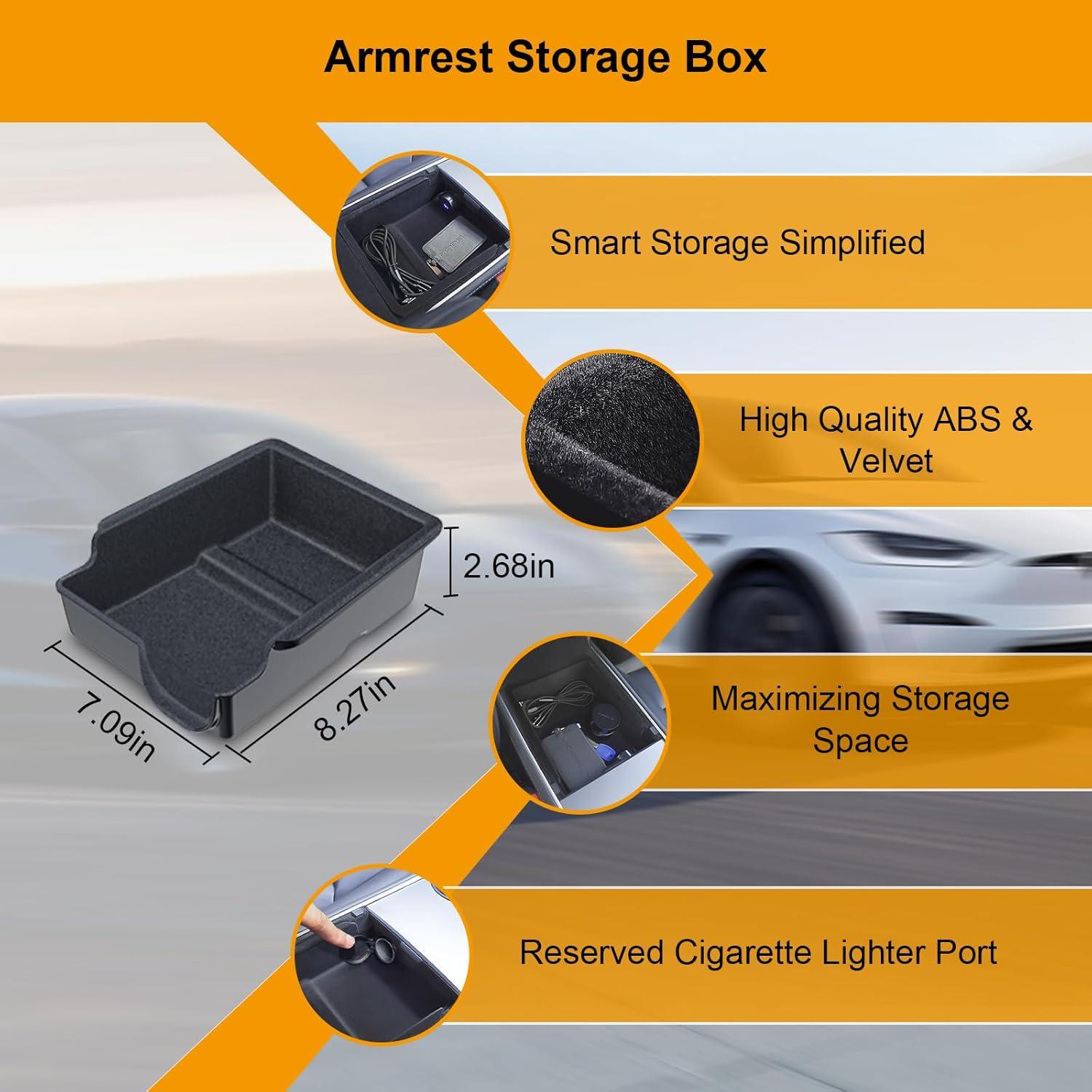 Perfect for Tesla Model Y: Adopted 3D Scanned and Integrated Molding tech, the BANKKY center console organizer is tailored for Tesla Model Y 2024-2020. It perfectly fits the center console/armrest and maximize your storage box. Comes with 1* Center Console Organizer, 1* Armrest Storage Tray, 1* Armrest Hidden Storage Box, 1* Cup Holder Insert, 1* Center Console Wireless Charger Mat, 2* Under Seat Storage Box.