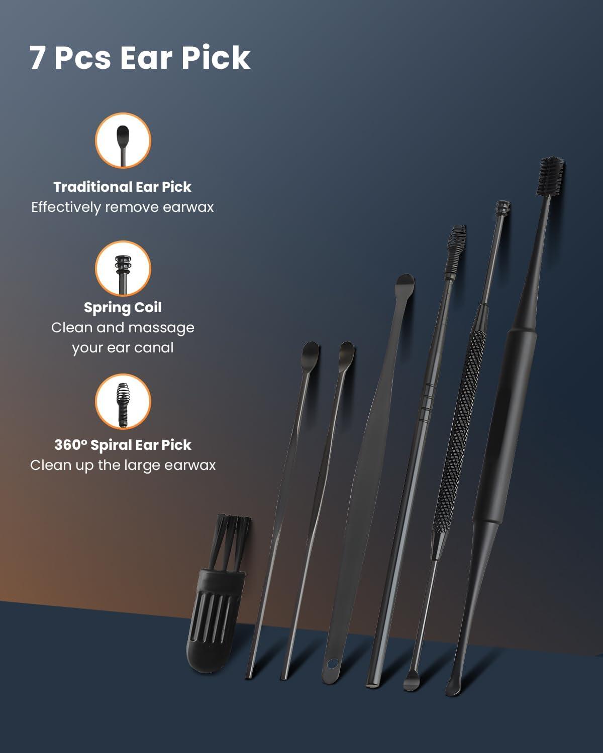 7 Tools for Ear Cleaner Kit: 7 differently sized curette cleaners to clean both soft and hard earwax efficiently to give your ear canals a relaxing massage and proper cleaning. All surfaces of the ear wax cleaning kit are carefully polished and smooth enough to prevent scratches to your delicate ears, to deliver a pain-less ear cleaning experience.