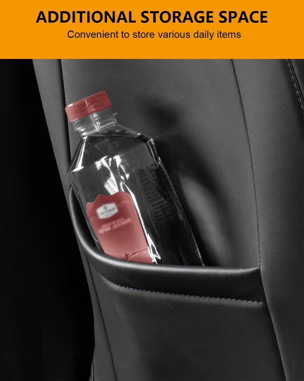 Additional Storage Space: This seat back protector for Tesla Model Y with organizer offers a much bigger storage space than original. Experience ultimate comfort while keeping your car organised with the Tesla Seatback Protector. It features an additional storage pocket that can accommodate drinks, books, snacks, and more, ensuring everything you need is within reach.