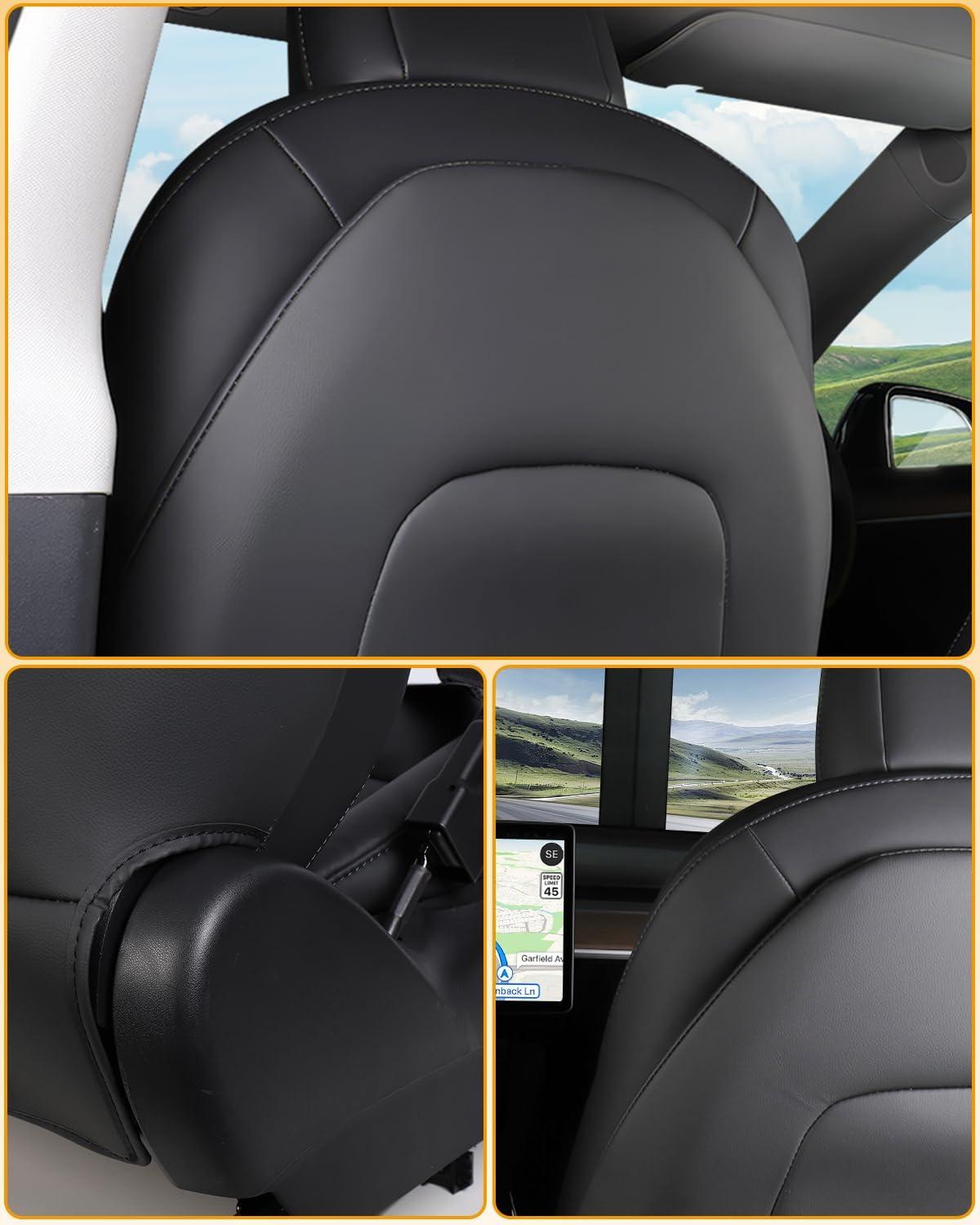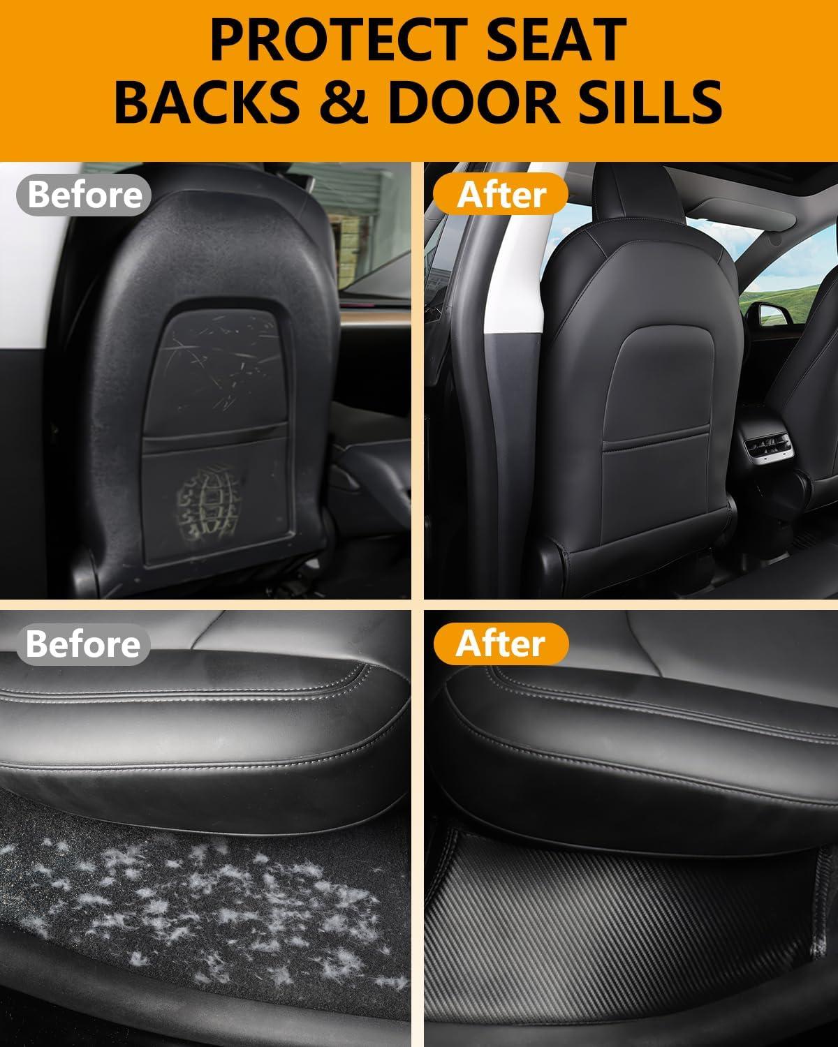 Highly Durable Materials: Our seat back protectors are made from microfiber leather with double stitching, ensuring durability for your car's interior. The door edge protector for Tesla Model Y is crafted from high-quality PP material, providing reliable protection against scratches. With our product, you can say goodbye to dirty seat backs and rear door sills with unsightly abrasion marks. Experience a clean and tidy car that looks as good as new!
