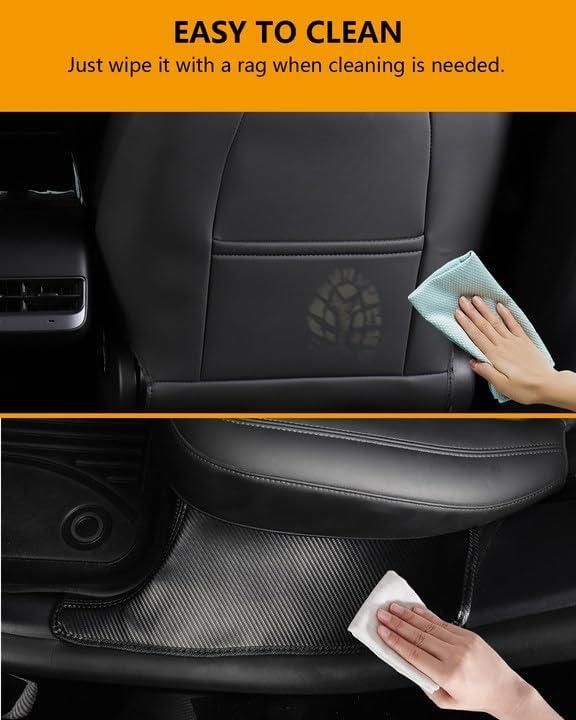 Easy to Clean: The seat back protector and door sill protectors for the Tesla Model Y are made of durable materials that are waterproof, wear-resistant, easy to clean, and can be wiped down with a rag, making them a practical and cost-effective solution that can withstand frequent use.