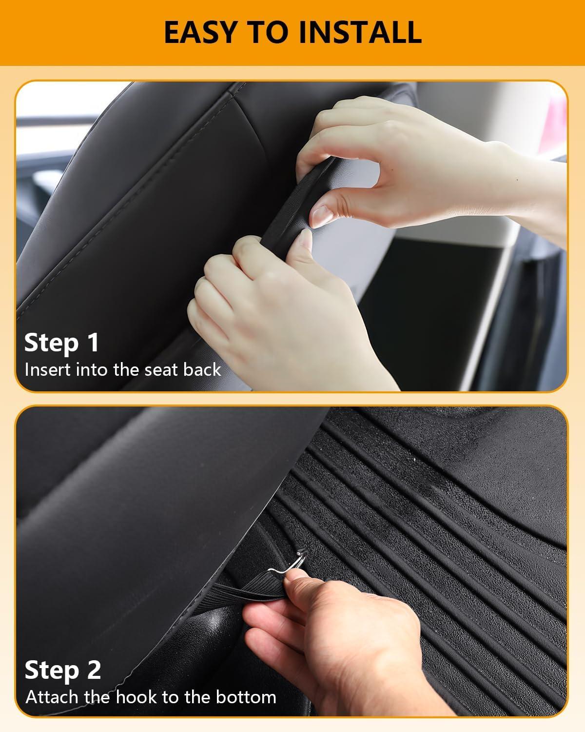 Effortless Installation: Installing our seat back kick protectors is a breeze. Simply insert the leather cover into the seat back and attach the hook to the bottom of the seat. The anti-kick mats will stay securely in place, offering ultimate protection against kicks to the backrest and door sills. Our door sill protectors for Tesla Model Y are less than 2.5 millimeters thick, making them easy to install without interfering with door opening and closing.