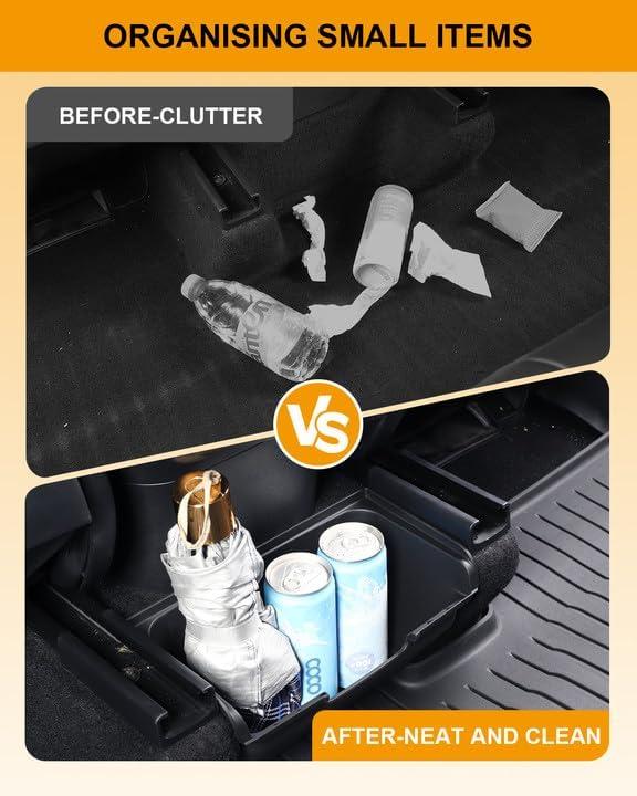 Durable and Easy to Clean: Made of TPE material, With this washable and maintenance-friendly trunk organizer for tesla model y, crafted from high-quality, non-toxic and odorless materials, this Tesla Model Y trunk storage bins is durable and safe for both you and your passengers. You can easily declutter your car and keep it organized. It stays in pristine condition and is the perfect perfect for Tesla accessories Model Y.